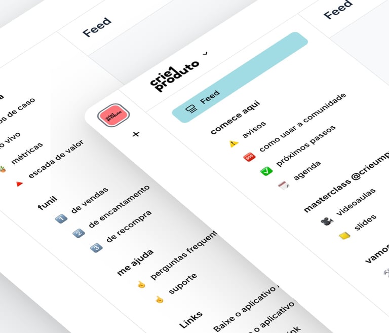 Acesso à comunidade da masterclass @crieumproduto, um espaço para você trocar ideias, celebrar conquistas e escalar com novos conteúdos, como estudos de caso.